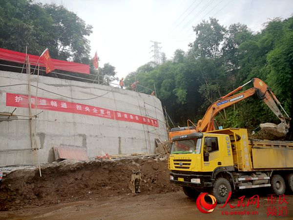 受領道路搶通任務的中交一公局三公司職工看在眼里,急在心里。他們第一時間集結挖掘機、裝載機、沖擊錘等專業裝備,沿著塌方體緊急開辟出人行通道,保障臨時通行。并迅速著手清理塌方體“卸載”減負,為砌筑擋墻永久性工程綜合整治做準備。項目經理譚利華帶領技術人員頂著暴雨踏勘現場,連夜繪制施工設計圖紙,制定道路搶通方案。